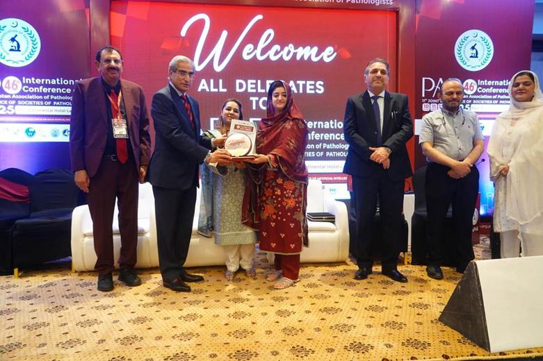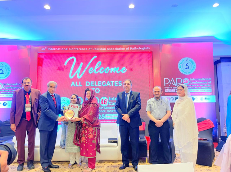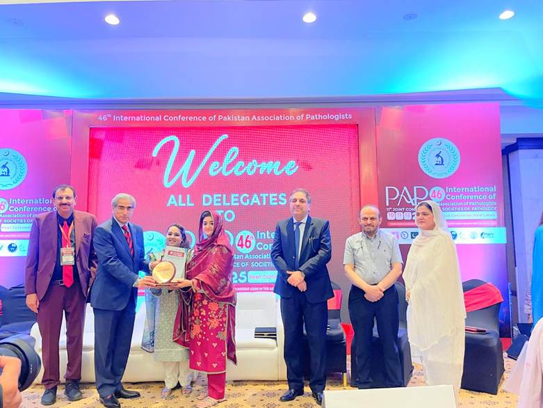 At the 46th International Conference of the Pakistan Association of Pathology (PAP), held under the banner of the Pakistan Society of Oral and Maxillofacial Pathology (PSOMP), Dr. Saleha presented her research titled “Comparison of Salivary MMP-8 Levels in Periodontitis Patients with and without Type 2 Diabetes Mellitus” and earned first position in the oral presentation competition.