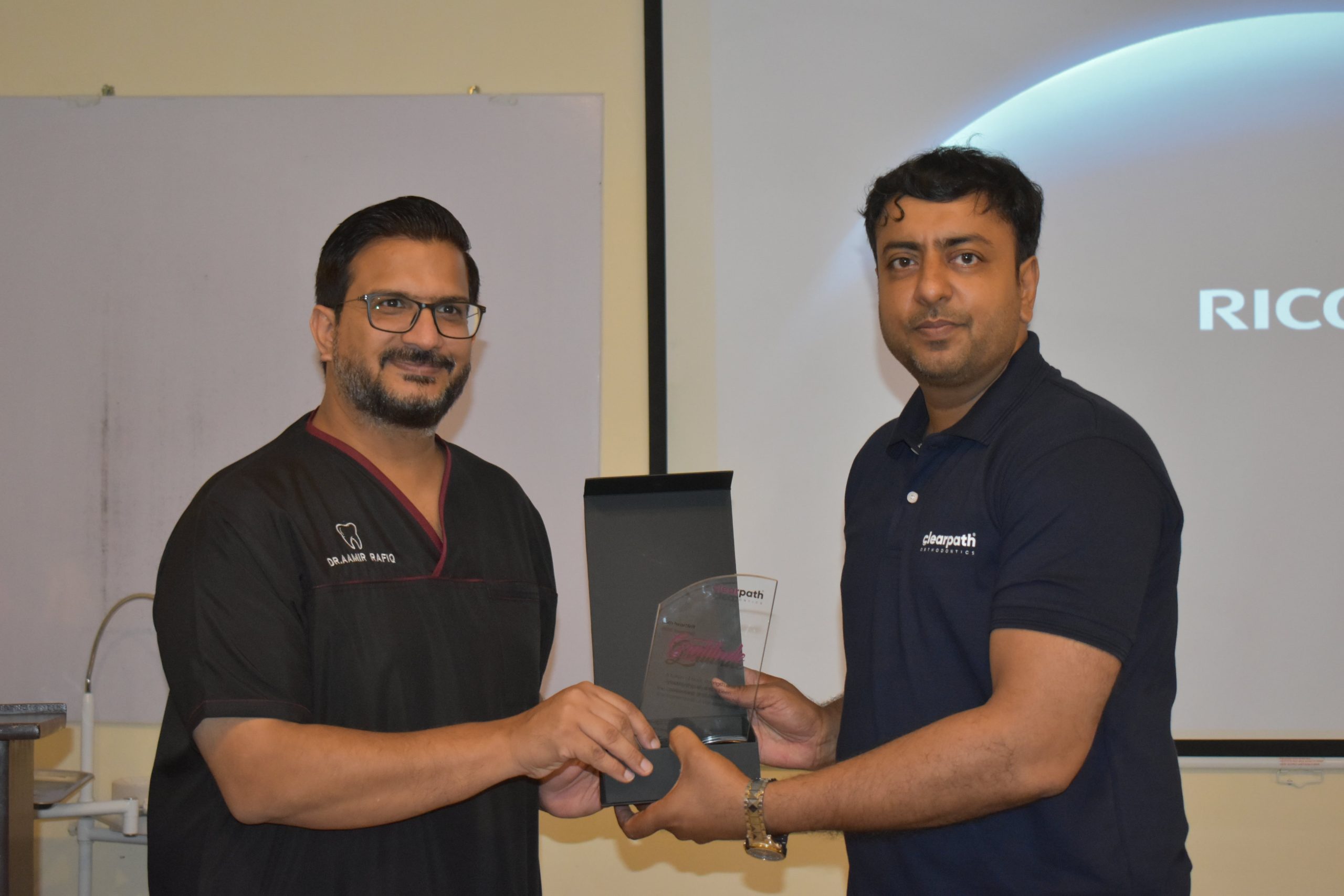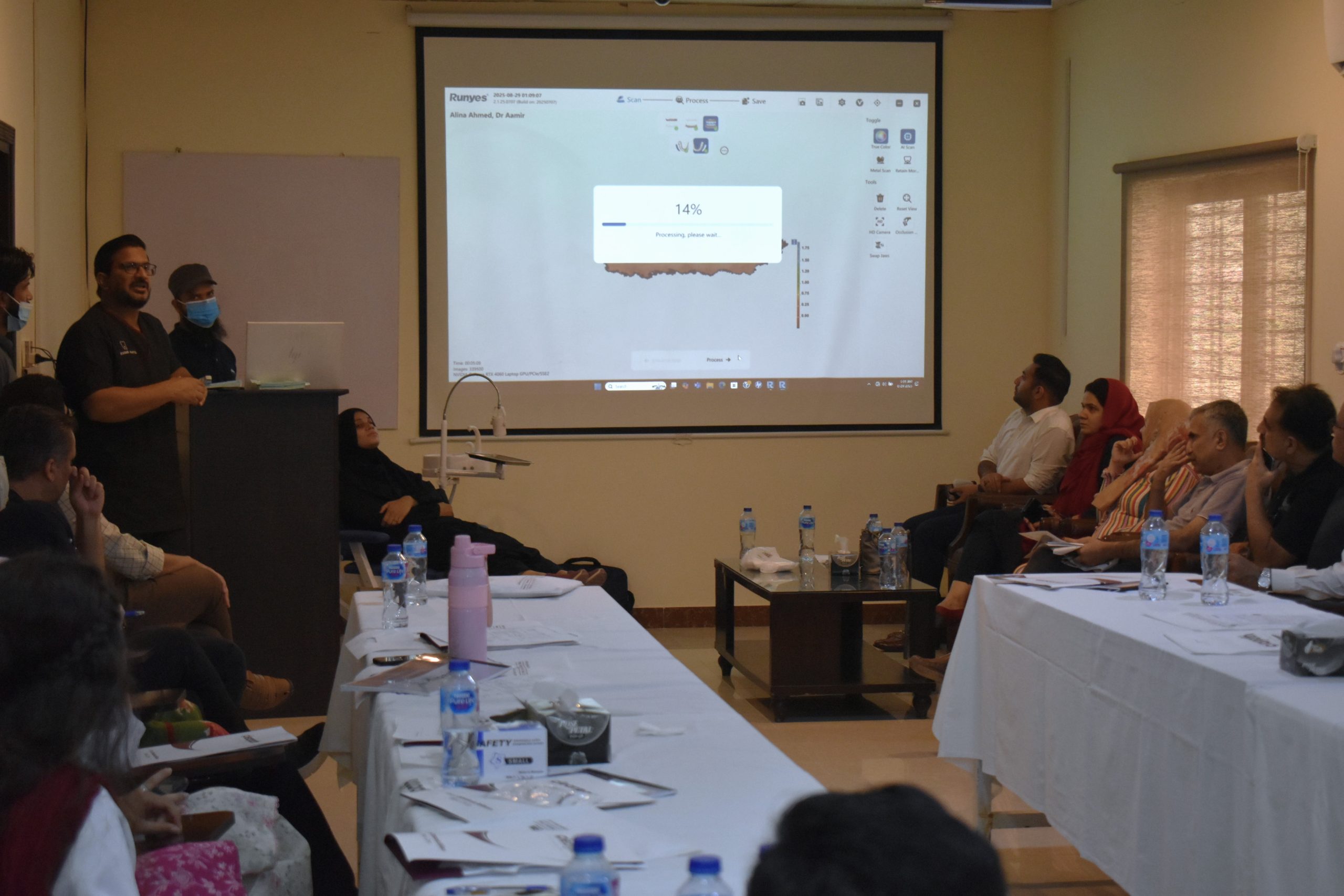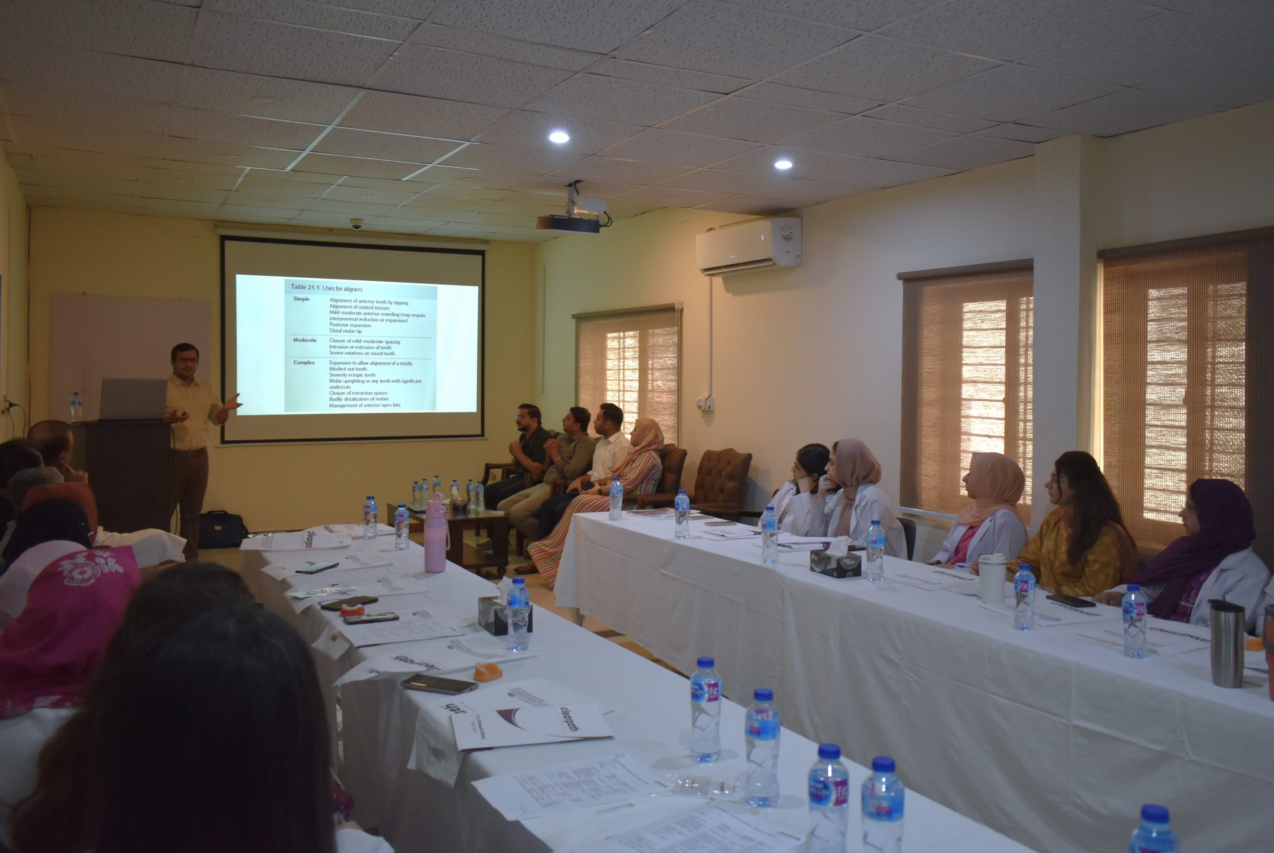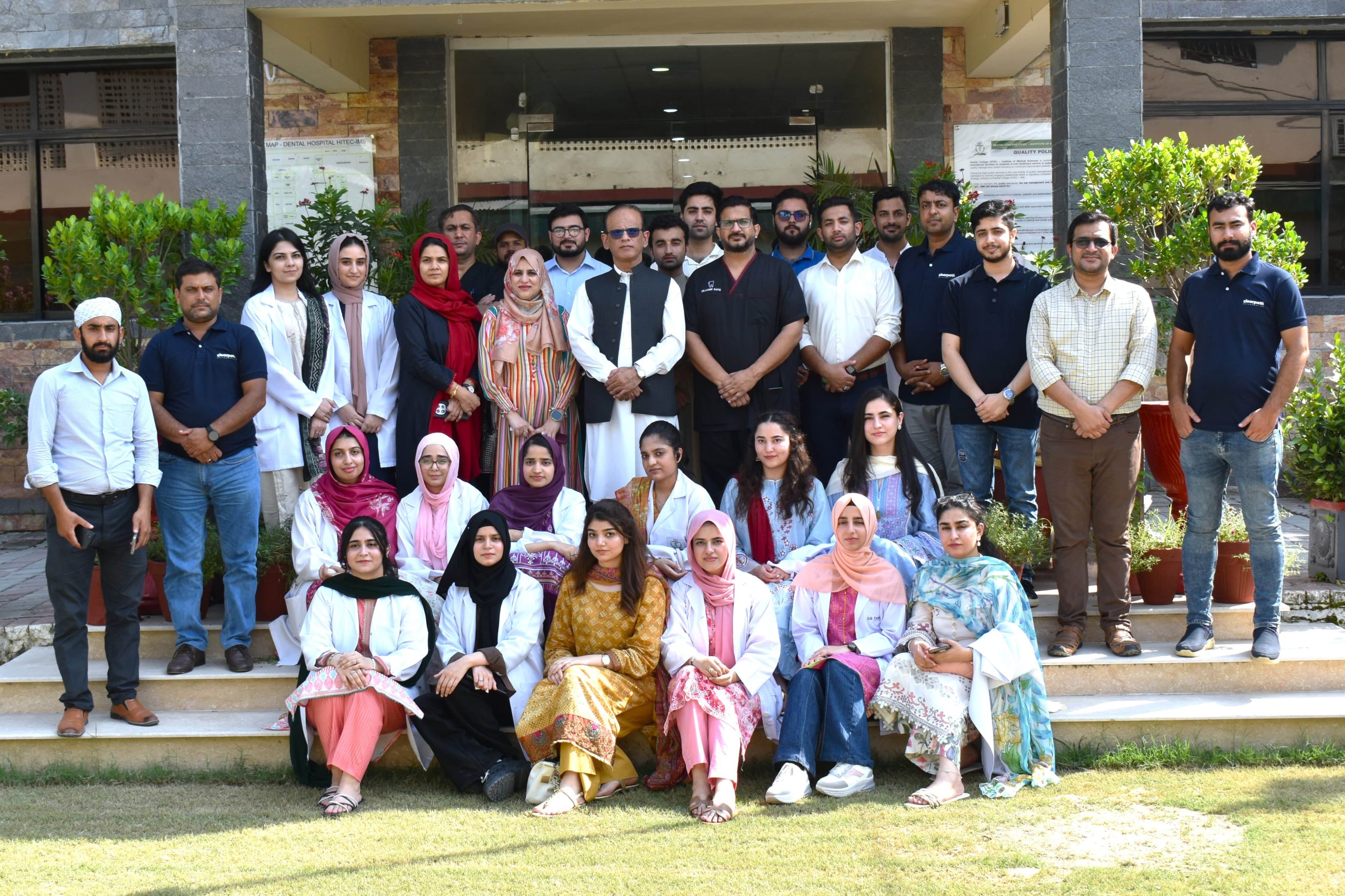 As part of the various workshops arranged periodically, in this institute to improve the knowledge and skills of faculty, graduates, clinicians and house officers, the Department of Orthodontics, in collaboration with Clearpath Aligners, conducted a one-day workshop on ‘’Digital Impression, Aligners and IPR in Dentistry’’ at Dental College, HITEC-IMS on August 29th, 2025. The event started with an encouraging opening address by the Principal, Dental College HITEC-IMS, who appreciated the efforts of the organizers and facilitators in making the workshop successful. This workshop was facilitated by Dr. Nasreen Nagani, a consultant Orthodontist, from Clearpath Orthodontics and Dr. Muhammad Hasnain from the department of Orthodontics, along-with a dedicated team representing Clearpath Orthodontics. Dr Amir Rafiq, Associate Professor and head of Prosthodontics department, shed light on the importance of intra-oral scanners and their applications in planning of dental prostheses. Participants learned case selection criteria, indications and clinical steps involved in digital impressions and clear aligner therapy. These interactive lectures were followed by a hands-on demonstration and practice session on use of intra oral scanners, bonded attachments and inter-proximal reduction (IPR) on models. This was further added by demonstration of digital scanning on a real patient. A total of 28 participants including the Principal Dental College, HITEC-IMS, some senior clinicians of the region, faculty members and young graduates completed the workshop successfully. This event was a great success in promoting knowledge and understanding of clinical applications of digital impressions in dentistry, clear aligner therapy and its adjunctive techniques.