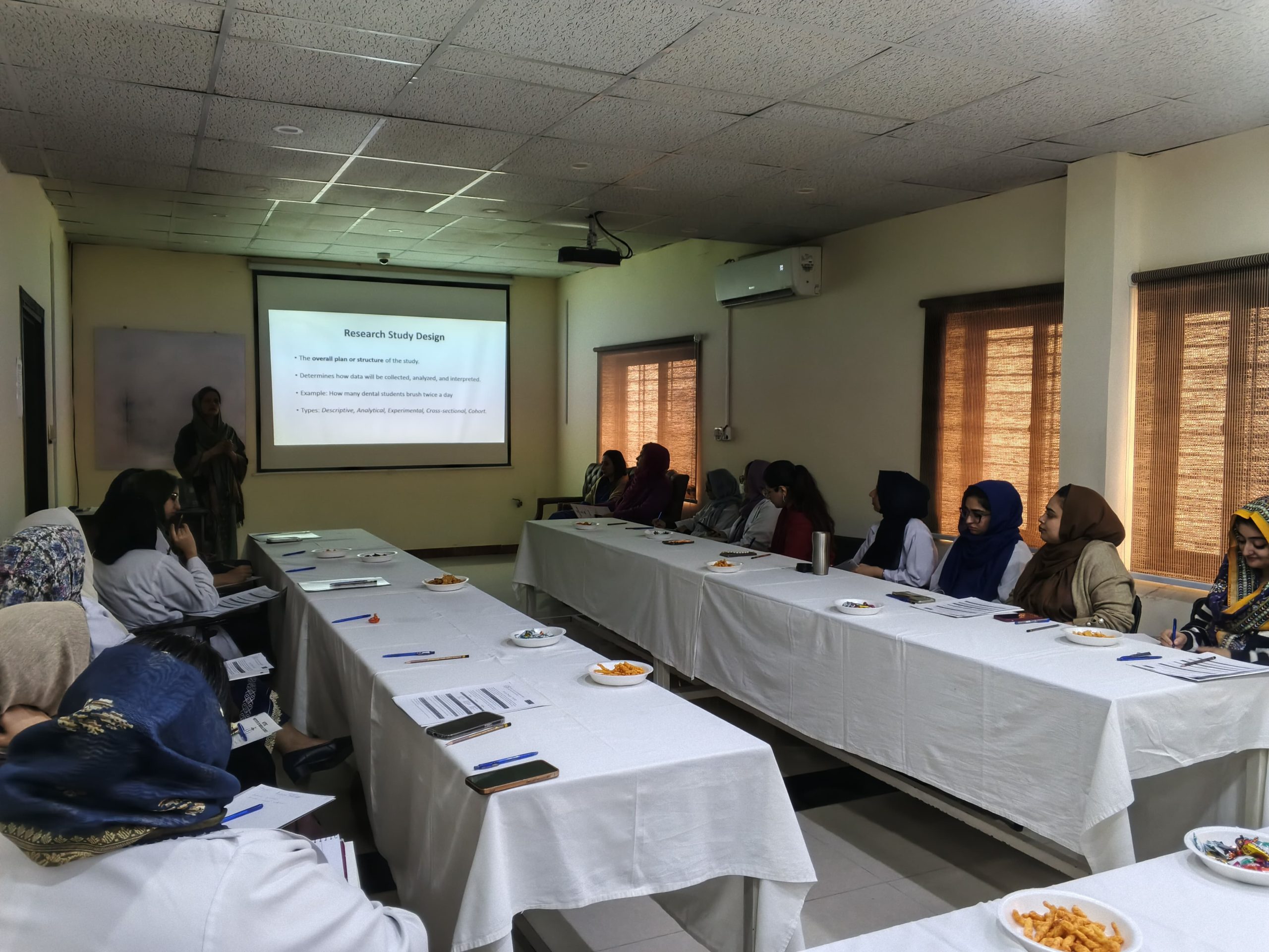 The Research Cell successfully conducted a Research Design Workshop on Friday, 14 November 2025, at the Dental Basic Lecture Hall, HITEC-IMS. The workshop was designed to strengthen faculty members’ understanding of research methodologies, study designs, and practical application in academic research. A total of 20 faculty participants attended the session.