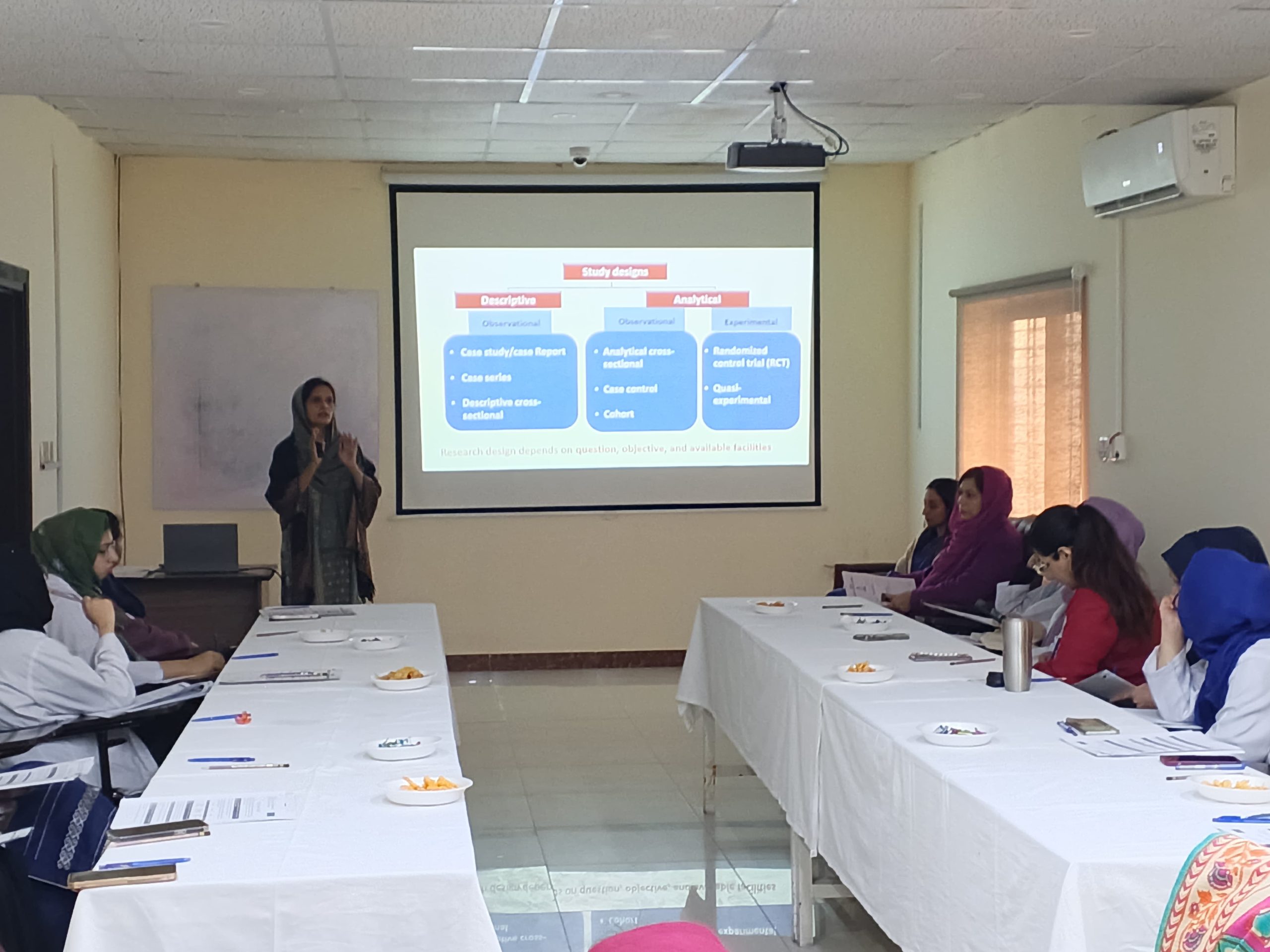 The workshop featured interactive scenario-based tasks, small-group discussions, and practical exercises that encouraged active participation from all 20 faculty members. Participants collaboratively analyzed real research scenarios, identified study designs, and justified methodological choices. The lively engagement and hands-on approach enhanced their understanding of research methods and improved their confidence in selecting appropriate study designs. Overall, the workshop successfully strengthened faculty research capacity and supported the development of stronger, methodologically sound research proposals.
